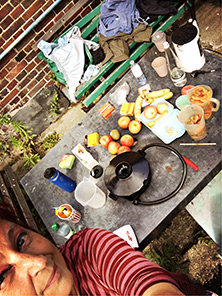You go out and pick a few flowers, take some birch bark with you and the kiwi and banana peels from breakfast, brew a soup out of it, add vitamin C and washing soda, stir, enjoy the sudden chemical reaction that bubbles slightly, makes the soup 2 degrees warmer and shifts it from red to green-bluish, carefully sniffing at the scent that has never been smelled before and has the feeling of being somehow very close to (healthy) matter, art and reality!