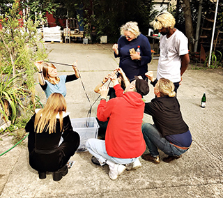 7 participants, 1 black and white Super 8 cassette, filming together and getting the ingredients, stirring together and developing! 15 meters of Super 8 film, bio-developed, air-dried, straight into the projector and thrown on the wall according to guerrilla screening!