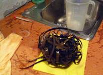 15 meter of film taken out of the tank, into a bucket for post-bleaching and then out to be detangled … | |||||||||||||||||