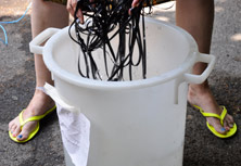 What a wonderful film festival! I was there for 4 days and gave a 2 days workshop. BILDRAUSCH about me: Now, Dagie Brundert is visiting Bildrausch and during a 2-day workshop (22 and 23 June 2017) she will not just introduce us to the art, fun and poetry of Super-8 filmmaking, but will also develop the films with the participants. Instead of using toxic chemicals, she will use Rhine water, flower petals, soluble coffee, vitamin C powder and washing soda. The result is a black and white negative film, which Tweaklab will convert into a digital positive. The works of the 6 participants will then be projected to the beats of the final party.” Thank you for being part of it: Adrian, Anna-Daphne, Christian, Sebastian, Silvan and Vera! |