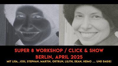 Super 8 kennenlernen. Filmen in Schwarzweiß, selber entwickeln. Kameras, Filmmaterial, Entwicklung & Scan, Getränke sind im Workshop-Preis (290 €) enthalten.