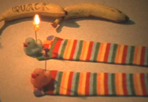 My (hopefully inspiring!) Welcome-film! | Jörg's striped feet on a journey through Dresden in winter 2009. Feet guitar! | A very short clip - toe socks as animation base! LA 2008. | Berlin summer 2010: Nadine pulls on her socks, rides the bike and brings pineapple slices to the workshop! | ||||||||||||||||