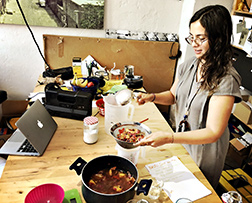 Wir frühstücken zusammen und verkochen dann nachher die Frucht- und Gemüsereste zum Entwickler!