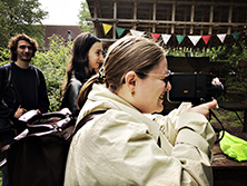 Super-8-Film: schwarzweiß, bioentwickelt, dem Zufall und dem Alltäglichen die Schönheit entlockt. Dieser schmale, analoge, für-Amateure-erfundene, von Künstler*innen-benutzte Schatz ist ein extrem sexy Material: Es ist warmfarbig, hat unschlagbare Grauwerte und Schwärzen, die man digital nie so hinbekommt, ist partiell geheimnisvoll unscharf, naturkörnig, nicht 100%ig vorhersehbar – selbst Entwickelunfälle können sich als ästhetisches Überraschungswunder entpuppen! Woraus bestehen Filmschichten, wie geht Farbe, was macht Licht, wie wirke ich als Entwicklerin ein – der Zauber des haptischen Analogen krallt uns und trudelt uns ins Universum der ökologisch unbedenklichen Biosuppen-Entwicklung! Wir werden mit frischem Material arbeiten: TriX, einem Schwarzweißfilm, den wir zum Negativ entwickeln werden. Wir filmen lokal und beziehen den Zufall, die Gelegenheit, unsere Umgebung mit ein. Wir stellen unsere Antennen auf, finden die Schönheit im Banalen, das Besondere im Vergänglichen, Situationen, Stimmung, Umwelt, Menschen, Wetter, alles was dort zu der Zeit ist. Der „persönliche Film“: jede/r bekommt eine Cassette Schwarzweißfilm – 15 Meter, 3 Minuten – und hat zwischen den beiden Blöcken Zeit, ihn alleine vollzufilmen. Im zweiten Block werden wir alle Filme zusammen entwickeln. Die Entwicklersubstanz ist frei wählbar, kann inhaltlich mit dem Filmthema zusammenhängen. Der Workshop ist vorbei / it's over! Danke fürs Mitmachen: Leah, Lis, Berfin, Momo, Lim, Johann und Indira |