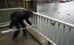 Mathijs lets the underwater camera carefully down into the swampy water. | |||||||||||