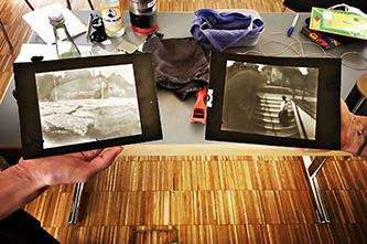 Get positive! - Make positive prints, mix individual developers. Basic substance: recyclable leftovers. One person, one day, one leftover food* = one liter of photo developer! How and why does it work? The result: a cardboard-strong, approx. DinA5-sized photo. This photo becomes a work of art and thus part of a longer exhibition: it is brought back to the place where it was taken. It gets 4 eyelets and is tied. Shrub, tree, grid ... It stays there until it gets stolen, rained down or weathered. It is in transit, it will disappear, but that doesn't matter, the flowers are wilting as well and the trees are losing their foliage. Nothing is forever, but for a while it's there and delightful.